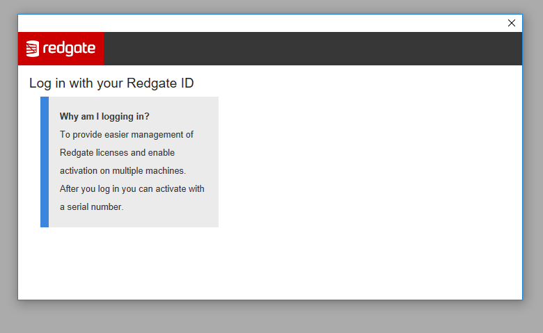 I'm trying to run the trial version (while I wait patiently for management to actually purchase the full), but there are no login boxes. It seems to be the case no matter which RedGate product, although so far I've only tried SQL Compare and Source Control.