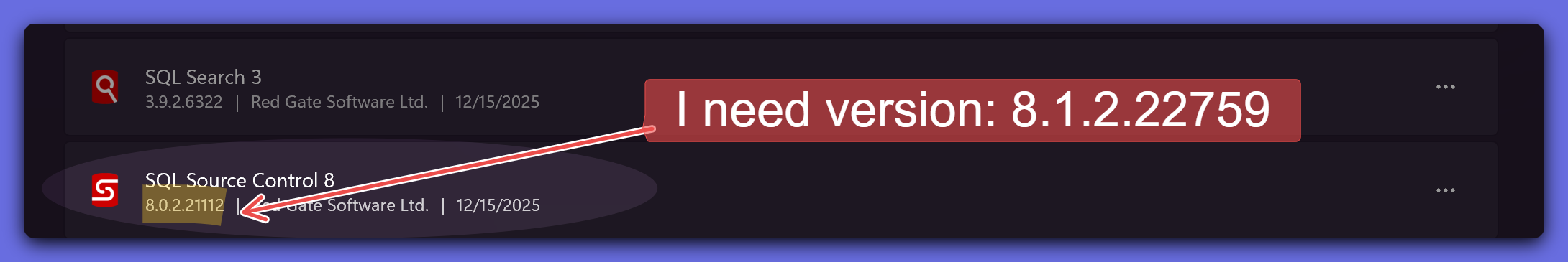 SQLSourceControl 8.1.0.22472 (un- and then reinstall did not help)