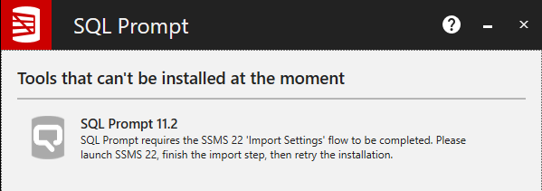 SQL Prompt requires the SSMS 22 'Import Settings' flow to be completed